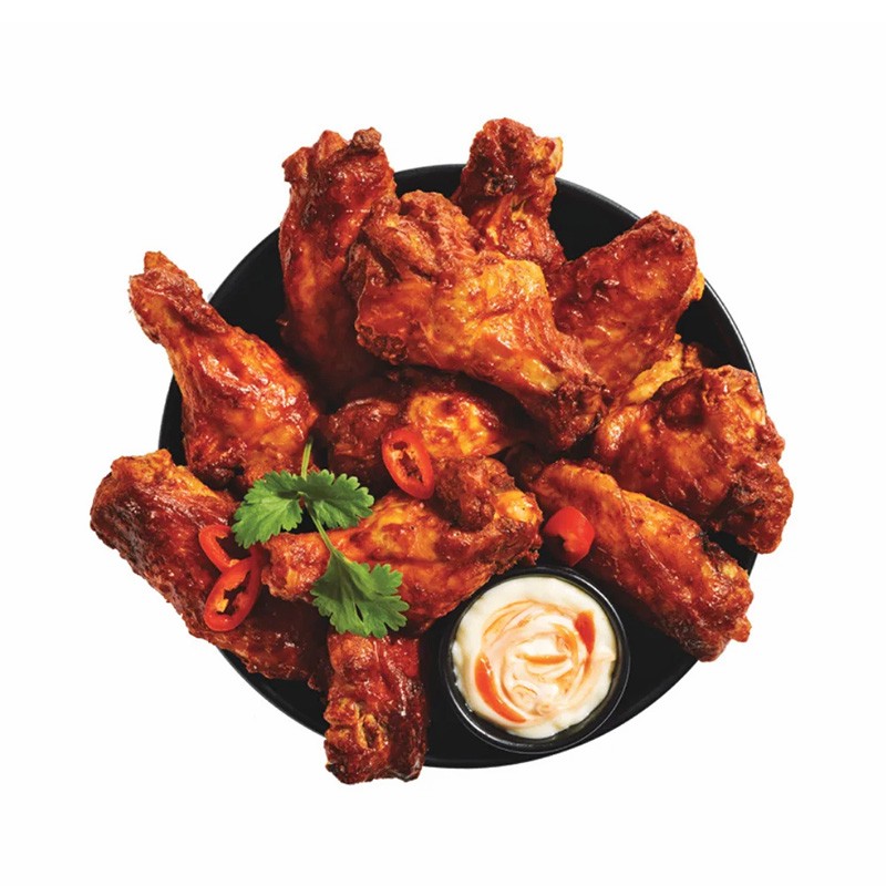 Aripi de pui 94%, sare, condimente, amidon, sare, ceapă praf, sirop de glucoză, roșii pudră, usturoi praf, zahăr, extract de drojdie, proteină vegetală hidrolizată, verdețuri, aromă, maltodextrină, extract de rozmarin.