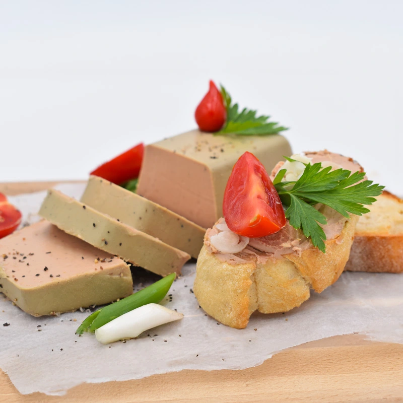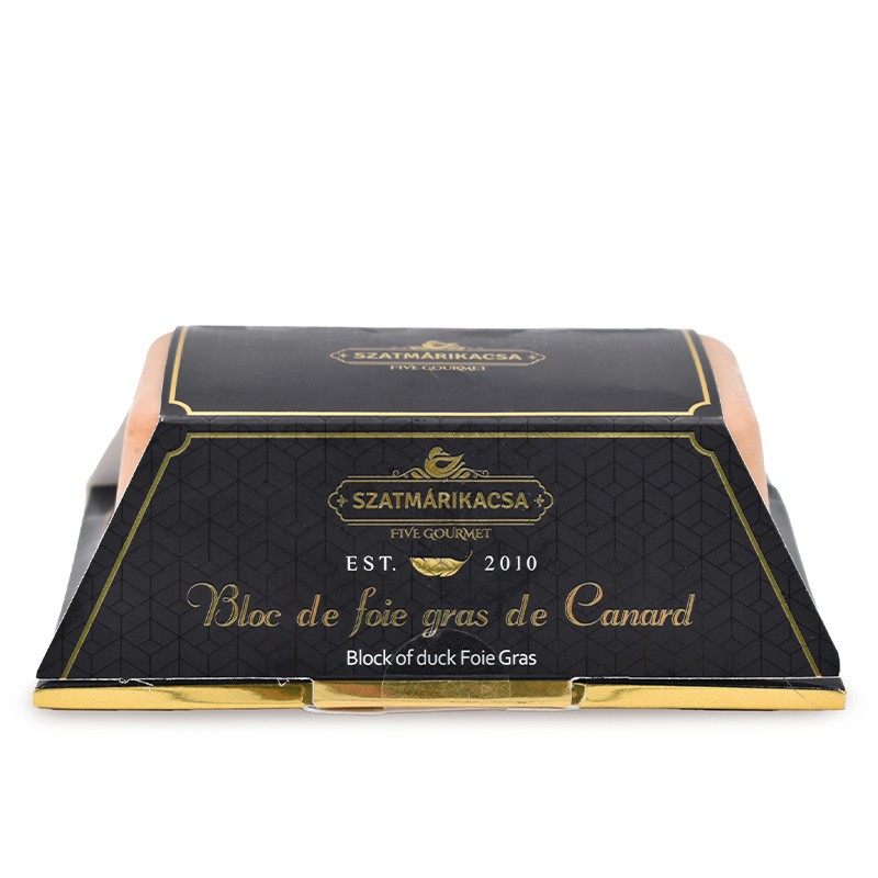 Ficat de rață îngrășată (87,5%), apă, vin Tokaji Szamorodni (sulfit), sare alimentară, zahăr, sare de murături (sare alimentară, nitrat de sodiu (conservant: nitrat de sodiu)), glucoză, antioxidant: acid ascorbic, condimente.