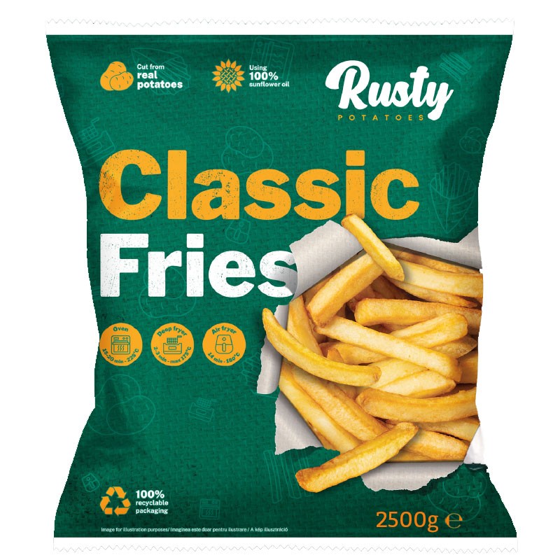(9,81 lei per kg)Cartofi pai 10×10 mm, Rusty, cat A, 2,5 Kg, congelați.