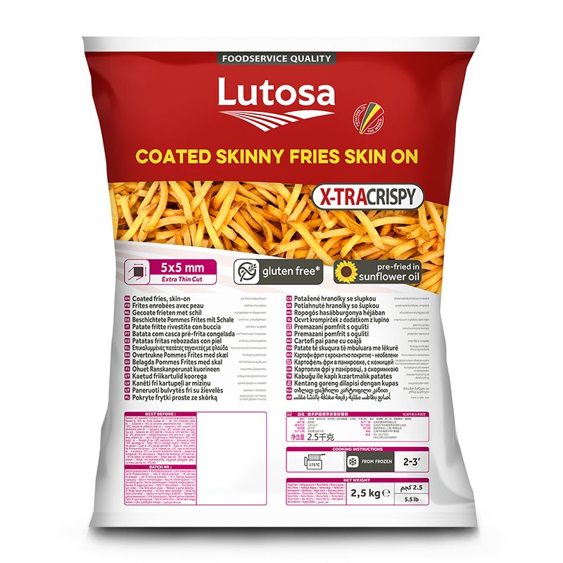 Cartofi pai 5x5mm, crunchy cu coaja, 2,5 Kg, congelați.