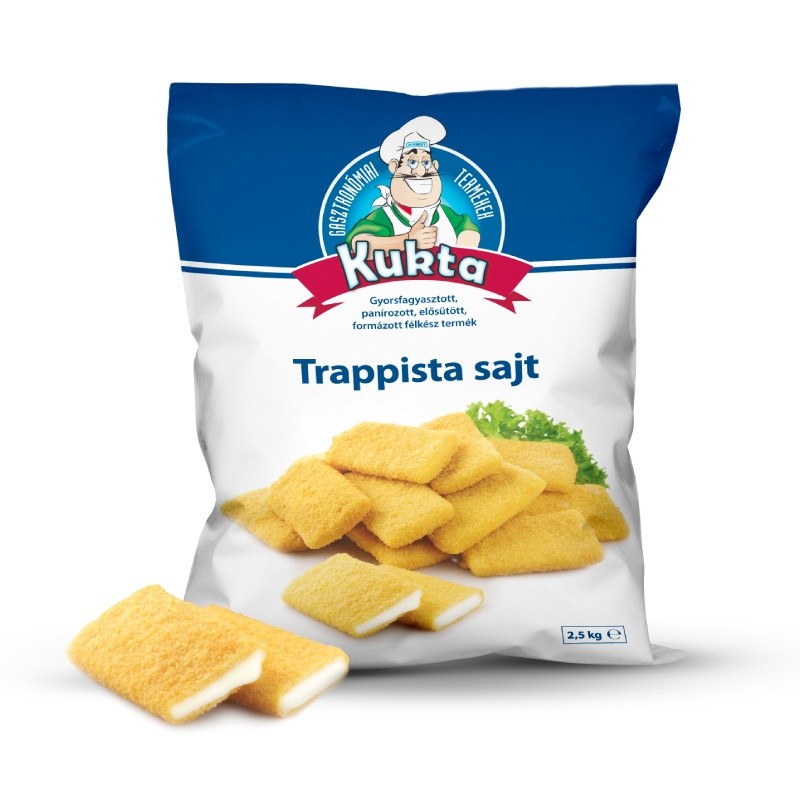 Cașcaval trappist 50% [lapte de vacă, culturi lactice, sare alimentară, enzime de coagulare, conservant (nitrat de sodiu)], pesmet [făină de grâu, apă potabilă, drojdie, sare alimentară, coloranți (caroten, extract de ardei)], apă potabilă, făină de grâu, ulei de floarea soarelui, amidon din porumb, sare.