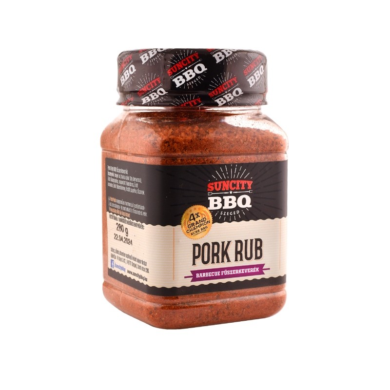 Sare de mare, zahăr brun (Dry Demerara), piper negru spart, boia de ardei măcinat, coriandru măcinat, chimen măcinat, boia ardei afumat, condimente.