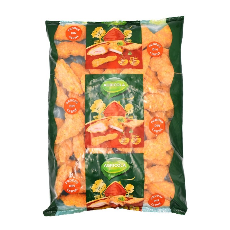 (52,84 lei per kg)Fingers din piept de pui cu fulgi de porumb, congelate, ~1 Kg.
