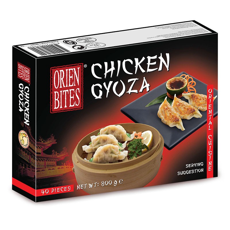 Pui 25%, făină de grâu, varză 22%, apă, ceapă 6%, arpagic chinezesc, uleiuri vegetale (răpiță, susan), ceai verde, zahăr, amidon modificat de tapioca, sare, usturoi, ghimbir, piper alb.