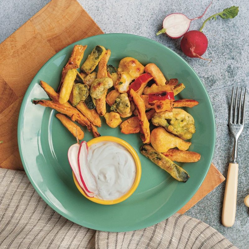 Legume în proporții variabile 55% (dovlecel, spanac, conopidă, morcovi, ardei, broccoli), făină de porumb, apă, ulei de floarea soarelui, făină de grâu, sare, arome naturale.