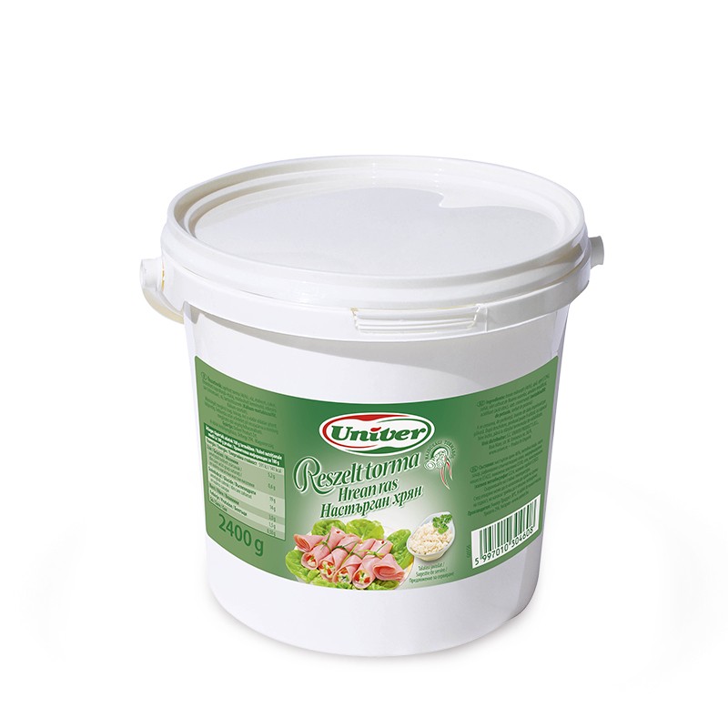 Hrean mărunțit (37%), apă, oțet (13%), zahăr, ulei rafinat de floarea soarelui, amidon modificat, acidifiant (acid citric), sare, conservanți (metabisulfiți de potasiu, sorbat de potasiu).
