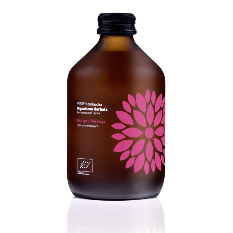Ceai Kombucha cu mango și fructul pasiunii, 330 ml