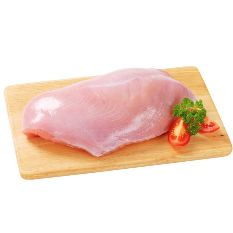(58,59 lei per kg)Piept de curcan dezosat, fără piele, congelat, ~1 Kg/ vid. Cantitatea exactă se va agrea telefonic cu clientul.