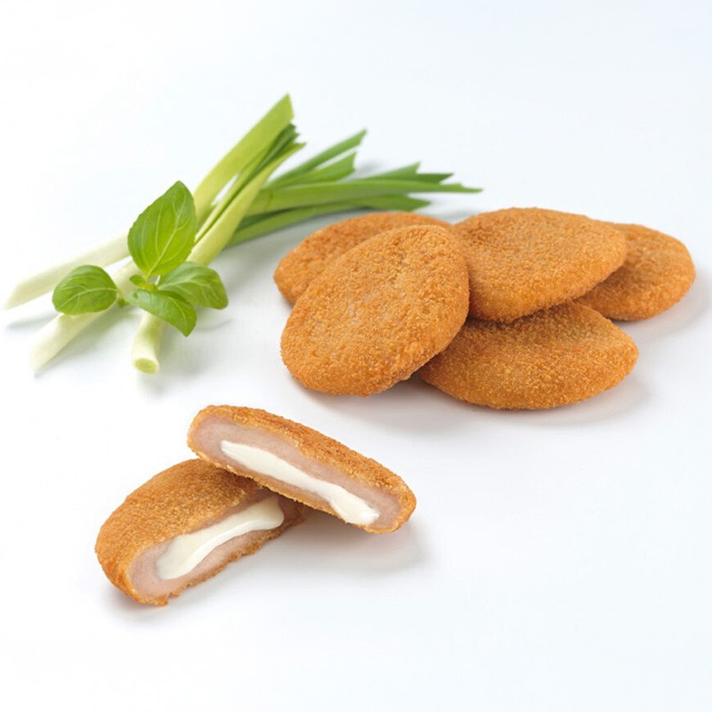 Carne de pui (28%), pesmet (făină de grâu, drojdie, ulei de floarea soarelui, sare, boia de ardei), apă, carne de pui separată mecanic (13%), brânză topită (10%) (Brânză, apă, săruri emulgatoare (di-, poli-, și fosfați de sodiu), amidon modificat), făină de grâu, ulei vegetal (floarea soarelui, rapiță), amidon modificat, sare, amidon, proteine din lapte, condimente, stabilizatori (di și trifosfați), agent dde îngroșare (E407a), extract de drojdie, antioxidant (acid ascorbic), conservant (E250), extracte de condimente.