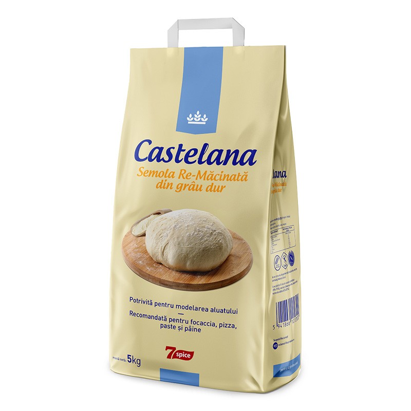 (9,16 lei per kg)Semola Castelana, ramăcinată grâu dur, 5 Kg/sac.