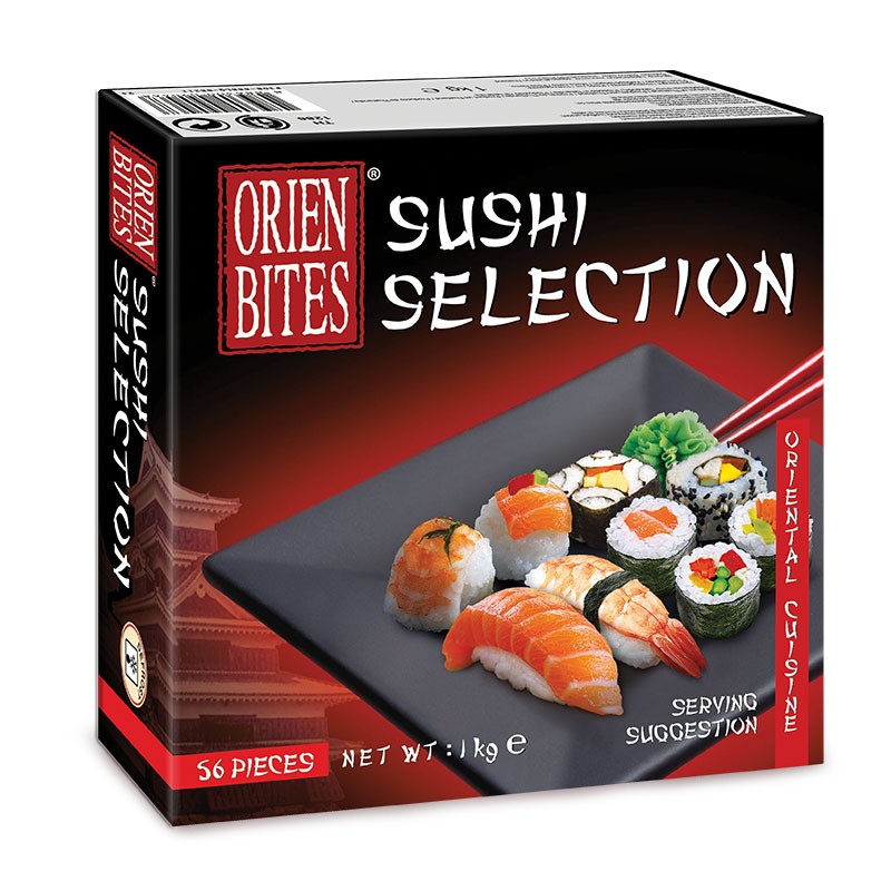 2 tăvi conține fiecare: 3 Temari cu creveți, 3 Temari cu somon afumat, 2 Nigiri cu creveți, 2 Nigiri cu somon crud, 2 Maki pătrate cu boia de ardei și avocado, 4 California cu creveți, 4 Maki cu avocado si morcov, 4 Maki cu somon afumat, 4 Maki cu legume.